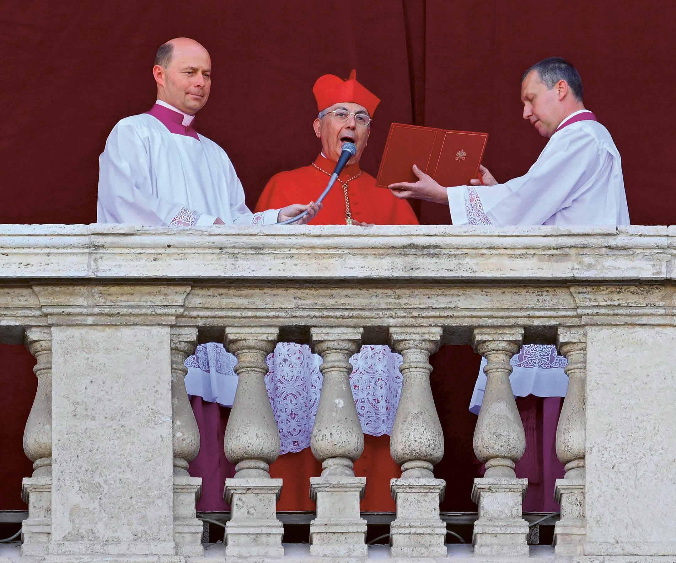 Kardinalprotodiakon Dominique Mamberti verkündet die Wahl von Leo XIV.