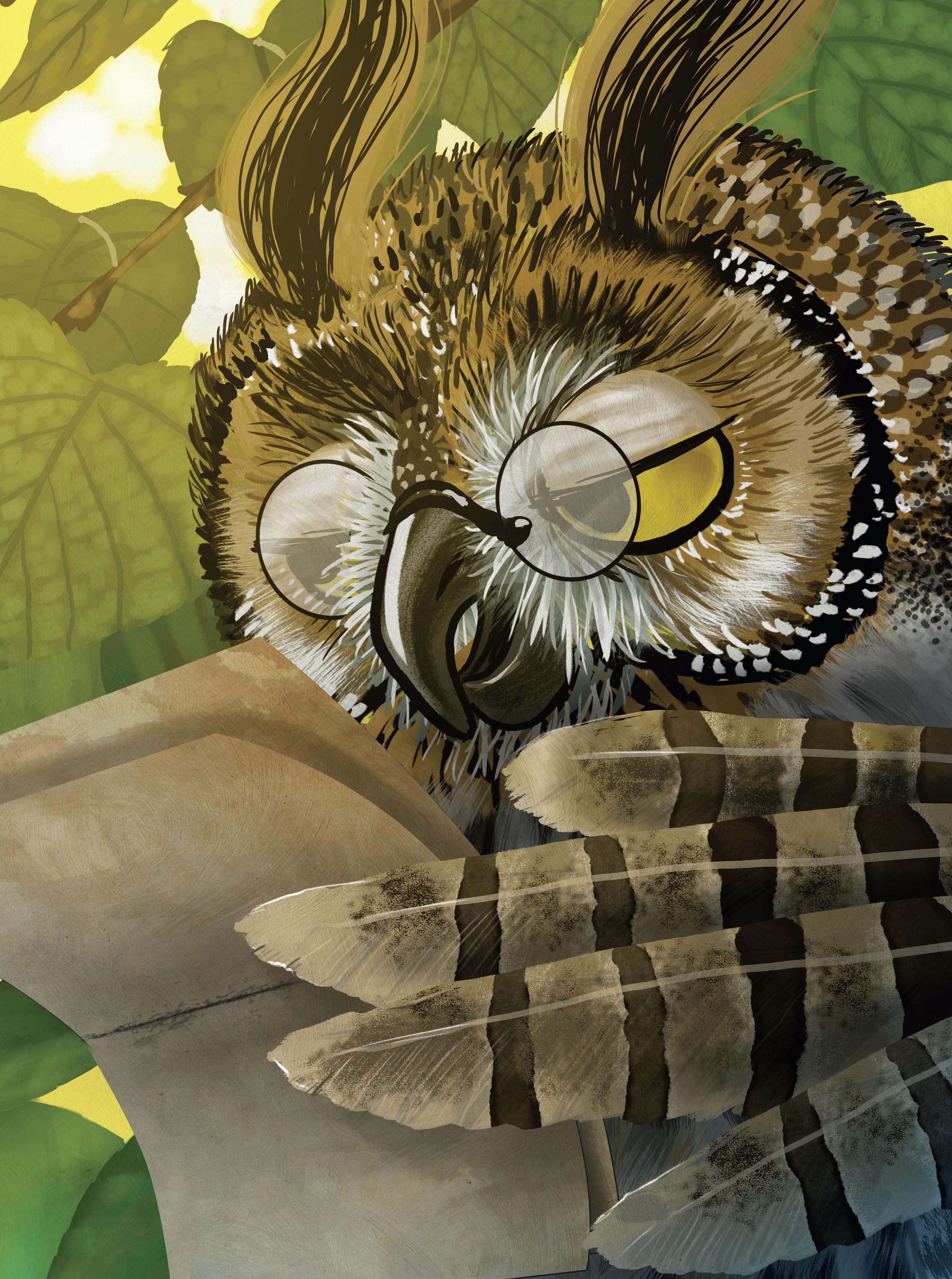 Berta hockt wie immer auf dem alten, verzworgelten Ast der mächtigen Buche und beobachtet die Szene mit einem Lächeln im Gesicht. Als die Baumzwergenkinder schliesslich alle in der Schulstube sitzen, macht sich die Waldohreule auf den Weg nach Hause. Ihr wurde berichtet, dass wichtige Post auf sie warte.