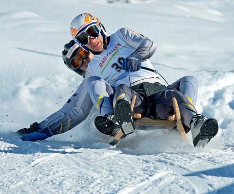 Durch Gewichtsverlagerung wird ein Rodel gesteuert.