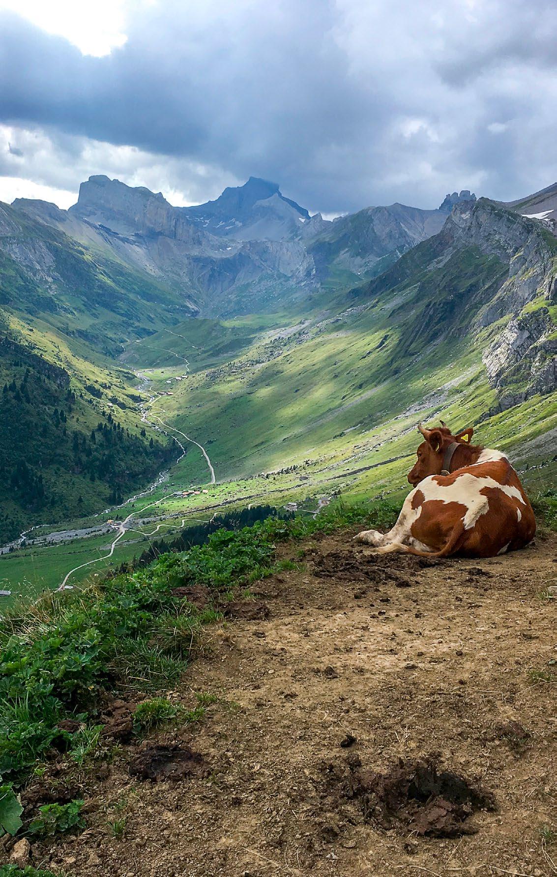 Samstagmorgen, 6.30 Uhr – wir steigen in den Zug Richtung Berge. Das Wetter spielt mit, aus dem Zugfenster werden in der Ferne bereits die Alpen sichtbar. An der Endstation angekommen, machen wir einen kurzen Abstecher zum Dorfladen, um uns dort mit Picknick einzudecken. Der Bergkäse aus der Region erobert nach der Degustation auf Anhieb den ersten Rang in der Hitliste. Eine halbe Stunde später wartet das vorbestellte Alpentaxi, das uns die ersten 500 Höhenmeter erspart. Die Fahrerin weist auf einige Besonderheiten des Tales hin. Unsere Neugierde wird geweckt, Fragen tauchen auf, und mir wird bewusst: Auch wenn ich oft in den Alpen unterwegs bin, über das alltägliche Leben hier ist mir nur wenig bekannt.
