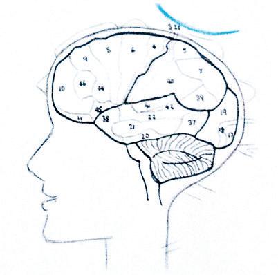 3 Der Bereich des Gyrus cinguli verbindet sich mit dem Bereich des Gehörs (möglicherweise geht der Hörsinn in den «automatischen» Funktionsmodus über) oder dem Bereich der Sprachflüssigkeit (Broca-Areal).