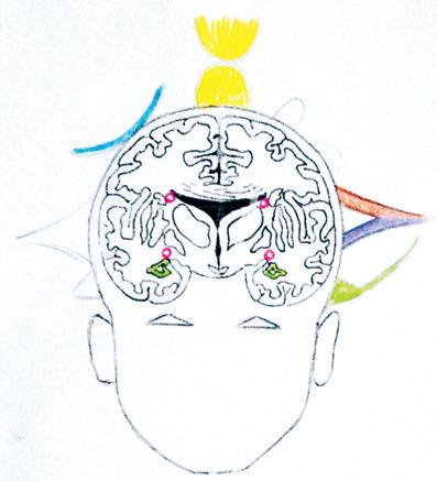 1 Der Bereich des Intellektes ist abgeschnitten und nur sehr wenig aktiv. Der Bereich der Sensitivität ist eingeschränkt, genau wie derjenige des Thalamus.