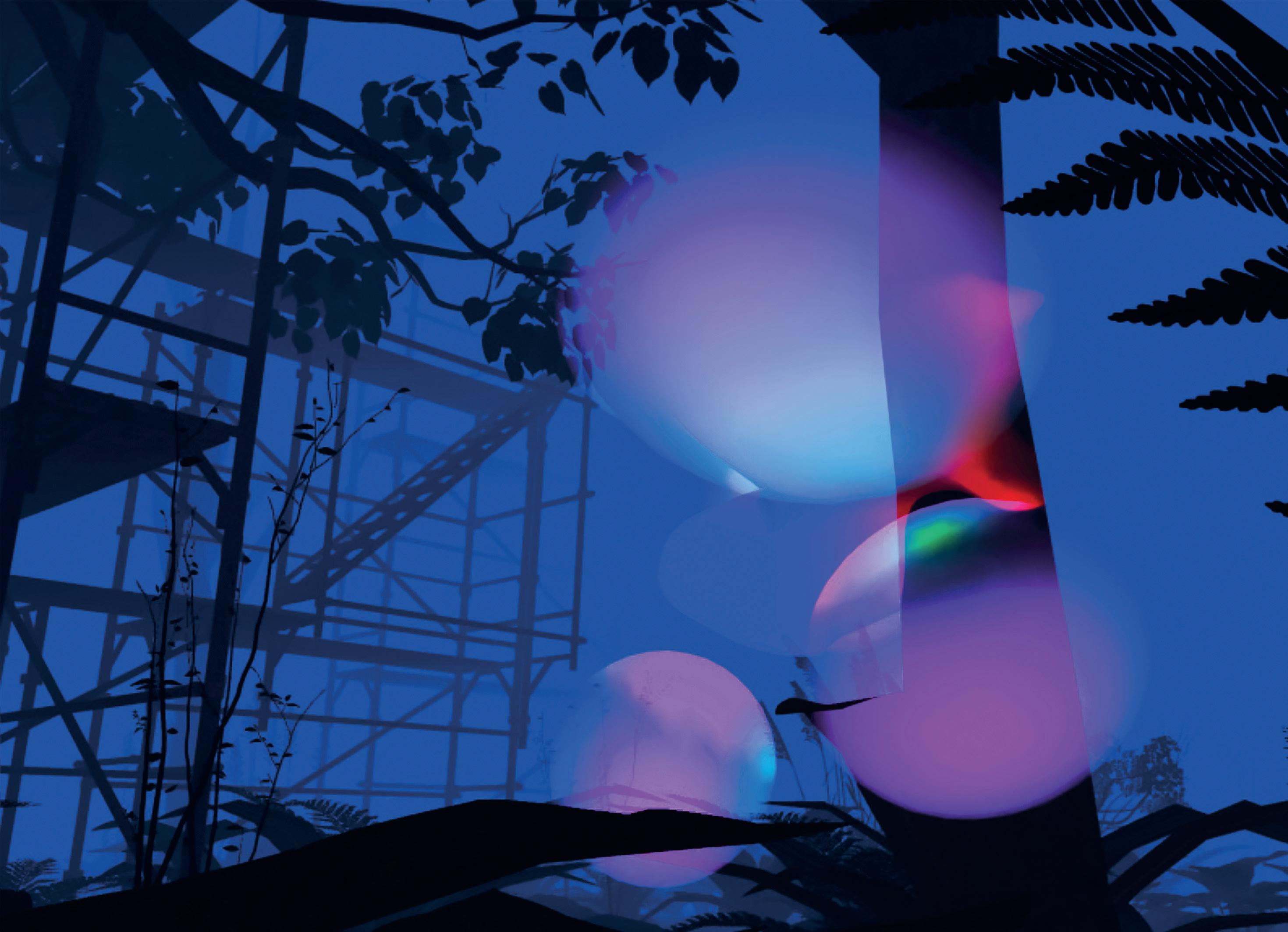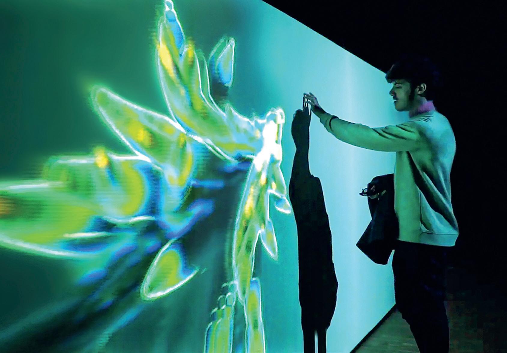Es ist stockdunkel. Inmitten einer nebligen Landschaft aus Bäumen, Sträuchern, Unterholz und seltsam anmutenden Gerüstkonstruktionen tauchen von Zeit zu Zeit helle Punkte auf, die zu farbigen Lichtgebilden auswachsen und an jene erinnern, die man sonst nur am arktischen Himmelszelt bewundert. Mittels Joystick navigiert man gemächlich durch diesen Nachtwald, nähert sich den leuchtenden Erscheinungen an, die einen scheinbar umhüllen, die Szenerie ausfüllen und sich schliesslich auflösen. Es sind «Beings», Wesen aus Licht, die als 3DModelle konstruiert, zufällig platziert und animiert sind. Dieses interaktive Spiel mit der Betrachtungssituation hat das Schweizer Künstler-Duo Monica Studer und Christoph van den Berg geschaffen, das mit seinen Projekten seit Jahrzehnten die Wirklichkeit um eine illusionistische Dimension erweitert. In echt erleben kann man diese virtuellen Nebelschwadenbilder am «Digital Arts»-Festival, das zum zweiten Mal nationale und internationale Kunstschaffende in das Zentrum von Zürich bringt. Das facettenreichste Festival für digitale Kultur, eine Initiative der «Digital Arts and Sciences Switzerland Association», verbindet das künstlerische Spektrum des Genres mit der Auseinandersetzung über globale gesellschaftliche Entwicklungen unter dem Einfluss der Digitalisierung. Es holt digitale Kunst aus dem Nischendasein, schliesslich tut sich der kommerzielle Kunstmarkt bislang schwer mit der virtuellen Virtuosität, die man sich nicht einfach an die Wand nageln kann… Projektionen, Videos, Devices, Spots und Softwares vermögen die begrenzten Flächen von Bildern und Screens zu überwinden: Sie machen die Betrachtenden zu Protagonisten des Ge-