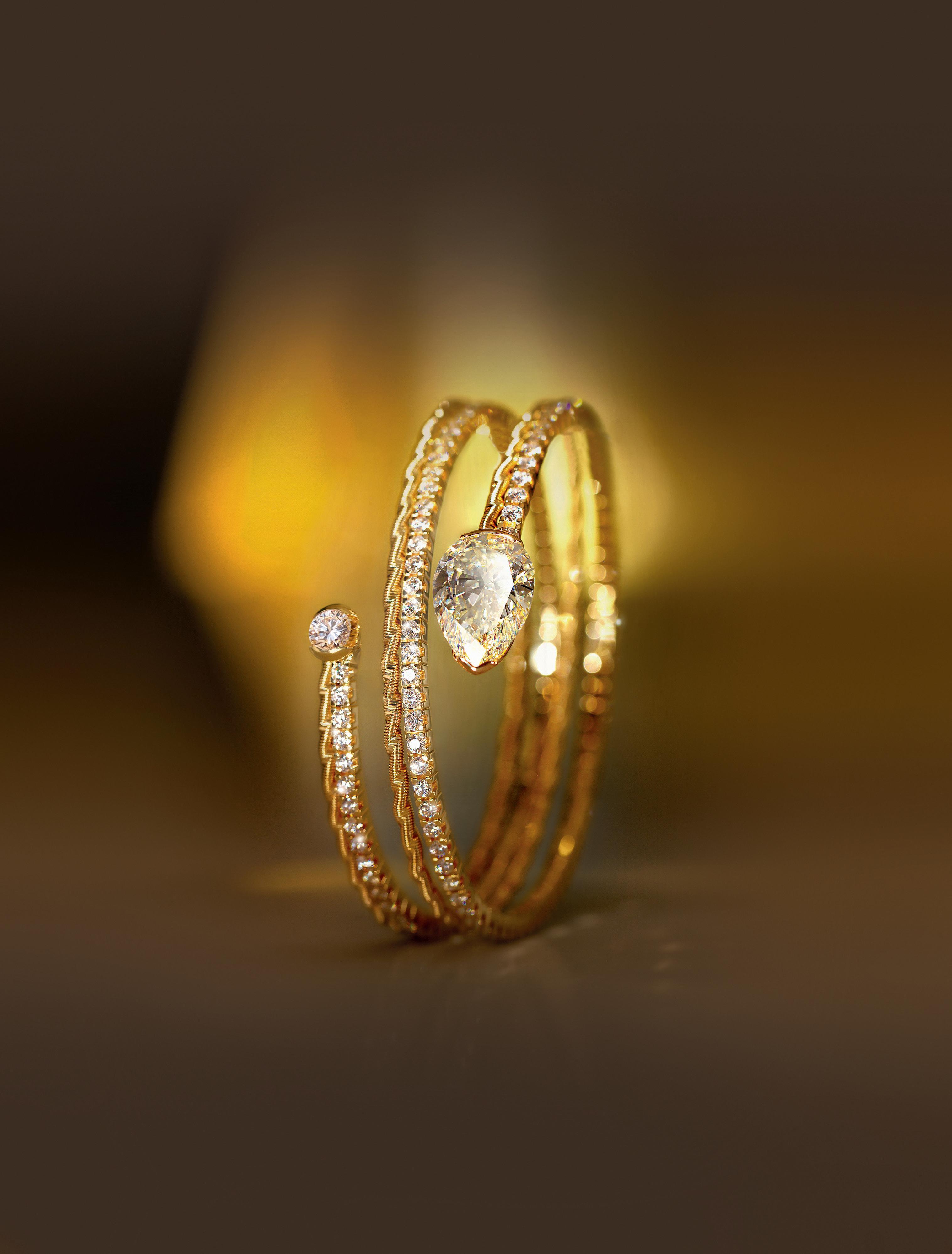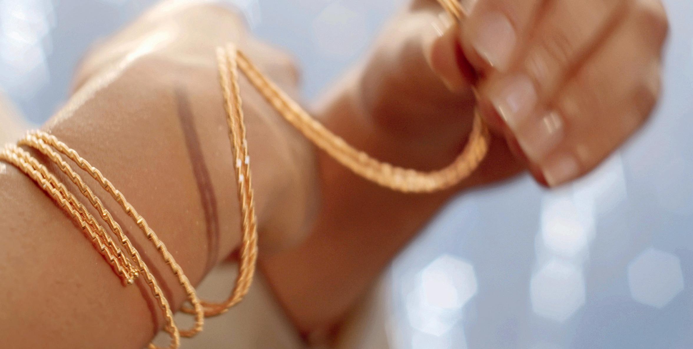 Das neue Wellendorff-Armband aus federndem Gold schmiegt sich an, umarmt Dich. Bei jeder Berührung, jeder Bewegung erinnert es Dich an Dein Glück, Deine Dankbarkeit und Deine Liebe.