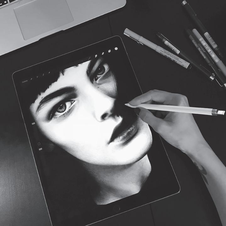 2 | 5 Illustriert auf dem iPad: Von Hand zeichnet Nicole Hubler alias Nikol Kraken das Porträt pixelpräzise.