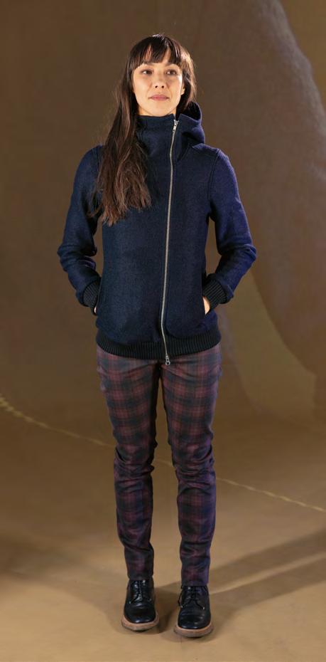 Ein Mantelkleid mit Zipper, eine High-Waist-Hose mit leichtem Schlag, ein Basic-Blusen-Pulli, ein schmaler Jupe sowie eine Kurzjacke sind in diversen bequemen Materialien erhältlich. Dabei verwenden sie Baumwolljersey und -denim, Viskose sowie einen leichten Merinowalk. Und: Erstmals bietet die Kollektion einen Strickpullover in diversen Farben an, der in Huttwil aus feinster Merinowolle hergestellt wurde.