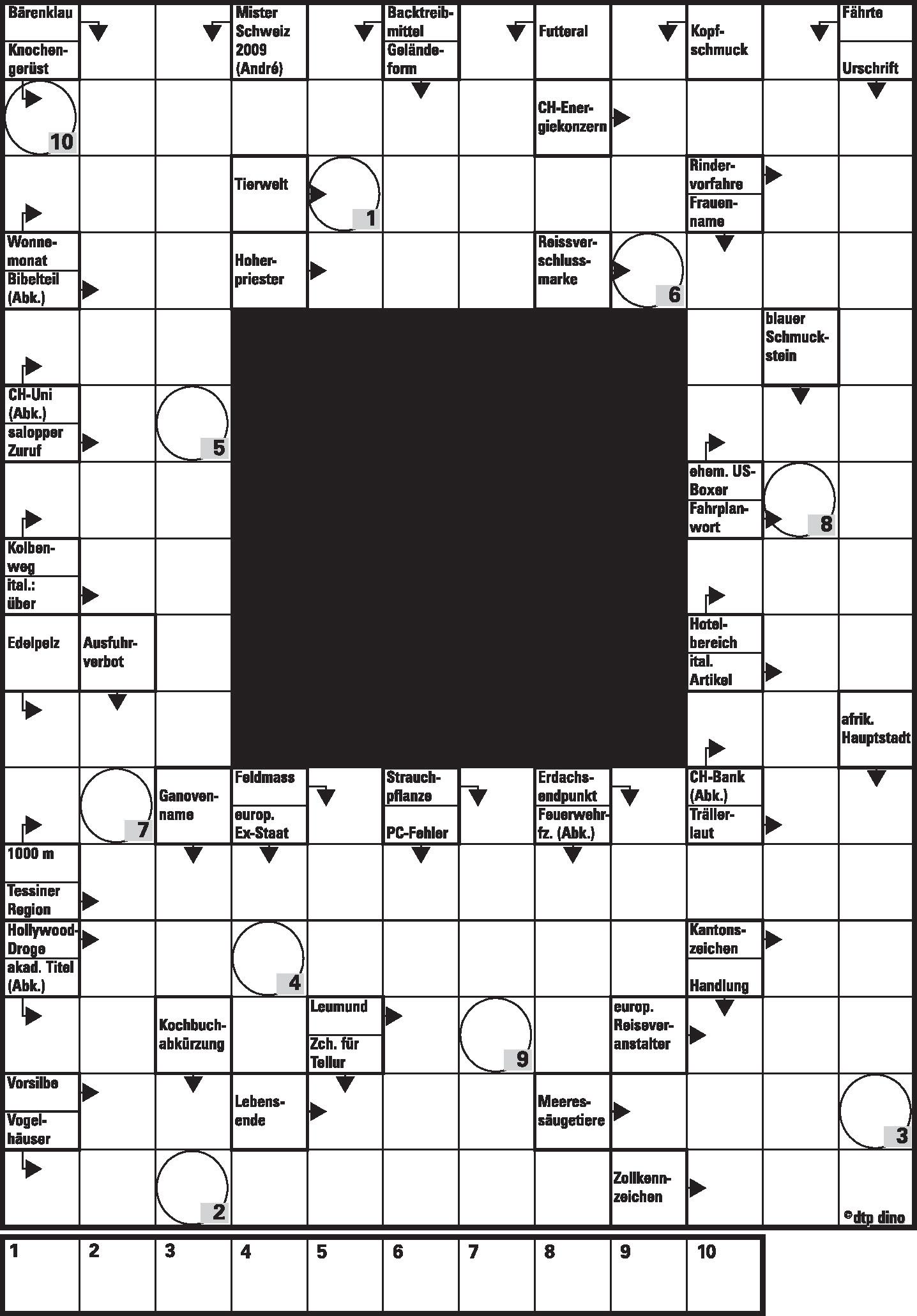 Teilnahmebedingungen: Gleiche Gewinnchancen für telefonische oder schriftliche Teilnahme. Mitarbeiter der AZ Medien Gruppe AG und Angehörige sind nicht teilnahmeberechtigt. Der Rechtsweg ist ausgeschlossen. Die Preise werden nicht in bar ausbezahlt. Es wird keine Korrespondenz geführt.
