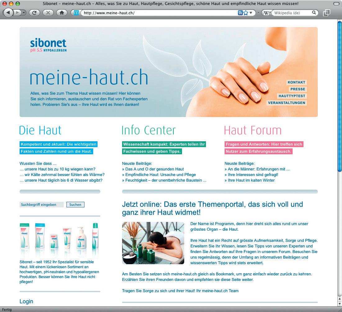 Sibonet ist seit 1952 Spezialist für sensible Haut und bietet ein breites Sortiment an hochwertigen, ph-neutralen und hypoallergenen Produkten an. Neu bietet Sibonet unter www.meine-haut.ch auf dem Internet ein Themenportal, das sich voll und ganz der Haut widmet. Dort finden Konsumenten wertvolle Informationen zum grössten Organ des Menschen, können vom Fachwissen von Experten profitieren und sich im Forum mit anderen registrierten Mitgliedern austauschen.