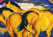 Franz Marc (1880 – 1916) gilt heute als einer der bedeutendsten deutschen Expressionisten des frühen 20. Jahrhunderts. Als Mitbegründer der Redaktionsgemeinschaft «Der Blaue Reiter» löste er sich vom traditionellen Kunstbegriff und ging vom naturalistischen Stil seiner frühen Werke zu grösserer Abstraktion über. Beeinflusst von Paul Gauguin, Vincent van Gogh und Robert Delaunay, begann Franz Marc, expressiver und farbintensiver zu malen. Sein trotz frühem Tod umfangreiches Gesamtwerk ist geprägt vom Leitmotiv der Tierdarstellungen. So gehören beispielsweise «Der Tiger», «Die gelbe Kuh» und «Blaues Pferd I» zu seinen berühmtesten Gemälden. Diese und viele weitere Werke von Franz Marc stellen wir Ihnen in dieser sorgfältig gestalteten Postkartensammlung und dem Booklet «Franz Marc. Leben und Wirken» vor.