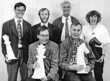 Im «Berner Oberländer» wurden 1998 die «Stammspieler» des Schachklubs Spiez, die an der Schweizer Mannschaftsmeisterschaft teilnahmen, vorgestellt. Unter ihnen, als einzige Frau, Hannelore Svendsen. Sitzend vor ihr (v. l.) Ruedi Thomann und Peter Trachsel, stehend Andreas Keller, Hannelores Mann Thomas Svendsen und Rued Frauenfelder. Foto: zvg