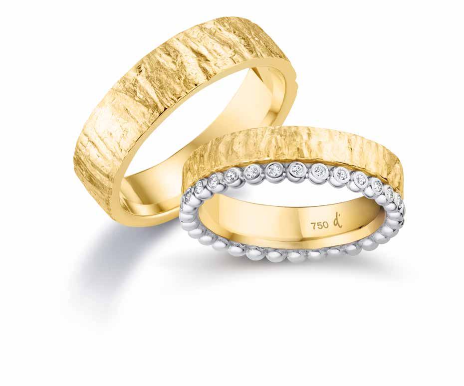 Unsere gesamte Trauringkollektion umfasst nebst den hauseigenen Kreationen auch die Kollektionen von Diadoro, Fischer und Christian Bauer. Wir verarbeiten nur Edelmetalle von Oekogold, die zu 100 % aus recyceltem Material gewonnen werden.