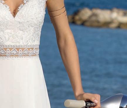 Die Hochzeitswelt beschert uns eine neue Farbe namens Neo-Mint. Sie ist frisch und neutral und harmoniert mit der Natur genauso gut wie mit der modernen Welt – eine Multitaskingfarbe also. Natürlich sind mehrere Schattierungen en vogue, besonders in Kombination miteinander. Die Farbe ist bescheiden, die Möglichkeiten sind hingegen gross, und das hat der Festmodehersteller Sorella Vita auch bereits umgesetzt. essensedesigns.com/de/sorella-vita