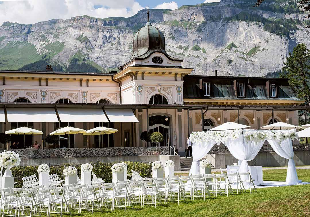 Verbinden Sie Ihre freie Trauung auf unserer Sky Terrace mit einer legendären Feier auf unserer grossen Bel Etage. Unser geschichtsträchtiger Ballsaal «Salon Trianon» ist individuell kombinierbar mit den drei angeglie derten Salons. Wir helfen Ihnen, ein wunderschönes Hochzeitserlebnis zu schaffen.
