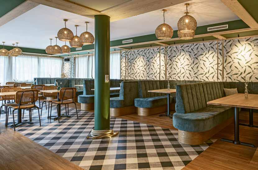 So gab es mit der Geschäftsübernahme nicht nur einen Generationswechsel, sondern auch einen Ideenwechsel, bei dem das bewährte Konzept jedoch erhalten blieb. «Der Identifikationsfaktor war auch sehr wichtig, denn die Umgestaltung sollte die Arbeit meines Stiefvaters auch würdigen», erklärt Caroline Reber. Daher entschieden sie sich auch für einen erfahrenen und lokalen Projektplaner, der die Anliegen des ehemaligen Geschäftsführers nachvollziehen konnte. Mithilfe von Gschwend AG Gastro-Bau haben sie sich diesem Abenteuer gestellt. «Das ganze Hotel und Restaurant hatte diesen Retrolook der 70er- und 90erJahre. Wir versuchten den ‹Seegarten› auch optisch zu einem ‹Seegarten Marina› zu machen.» Als sie gefragt wurden, ob sie den Betrieb weiterführen wollen, war für die beiden daher gleich klar, dass eine Umgestaltung vonnöten ist. «Wir wollen zu 100 Prozent dahinterstehen können und gleichzeitig auch die Jungen ansprechen.» Genauso klar war es, dass das Grundkonzept erhalten bleibt und sozusagen modern aufpoliert wird, da das Unternehmen an sich gut besucht war.