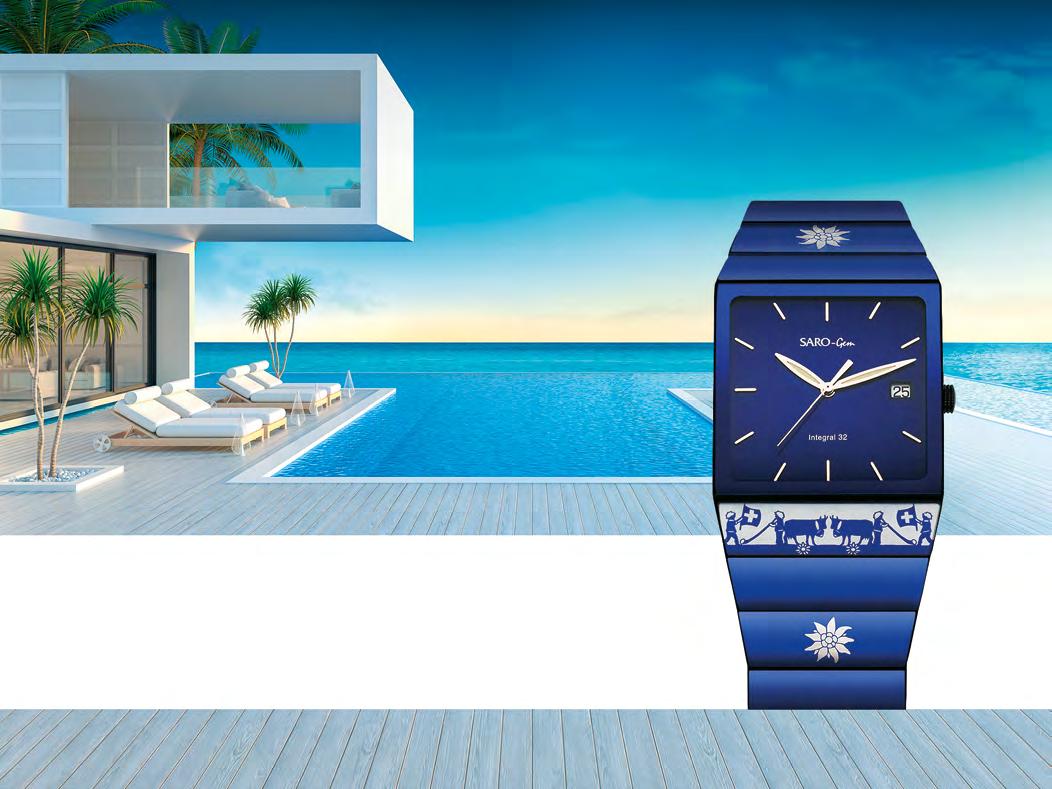 Mit deren einzigartigen Saphir-Bändern ist SARO-Gem weltweit die einzige Firma, die solch hochwertige Armbänder anbietet. Mit grosser Sorgfalt und viel Erfahrung werden nur Materialien von höchster Qualität verarbeitet. Diese Schmuckuhren werden nicht in Massen produziert, sondern nach Ihren persönlichen Wünschen gefertigt. Das Saphir-Band kann mit einer Gravur, wie zum Beispiel einem Edelweiss, einem Scherenschnitt oder Delfin usw. personifiziert werden.