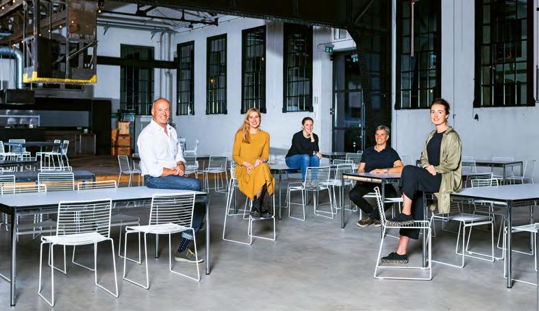 Bild linke Seite: Die Selvewerke AG mit Erwin Gyger, Sabine Portenier, Isabel Wirth, Heinz Brügger, Romy Gyger (von links). Bild rechts: Die Halle 6 soll mit dem künftigen Konzept ein öffentlicher Ort bleiben. Bild unten: Heinz Brügger ist mit seinem Architekturbüro seit 2008 im Winkelbau beheimatet.