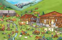 fünf Wimmelkarten mit wunderschön illustrierten Alp-Szenen