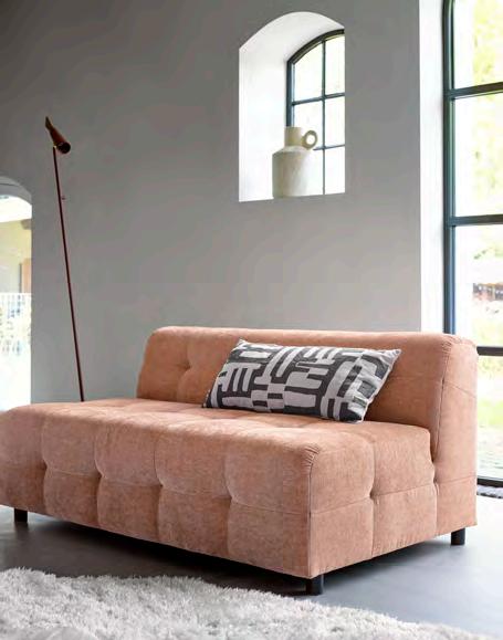 Stel zelf de ideale opstelling samen en geniet van comfort. De zachte roze stof en elegante stiksels geven de bank een verfijnde retro uitstraling.