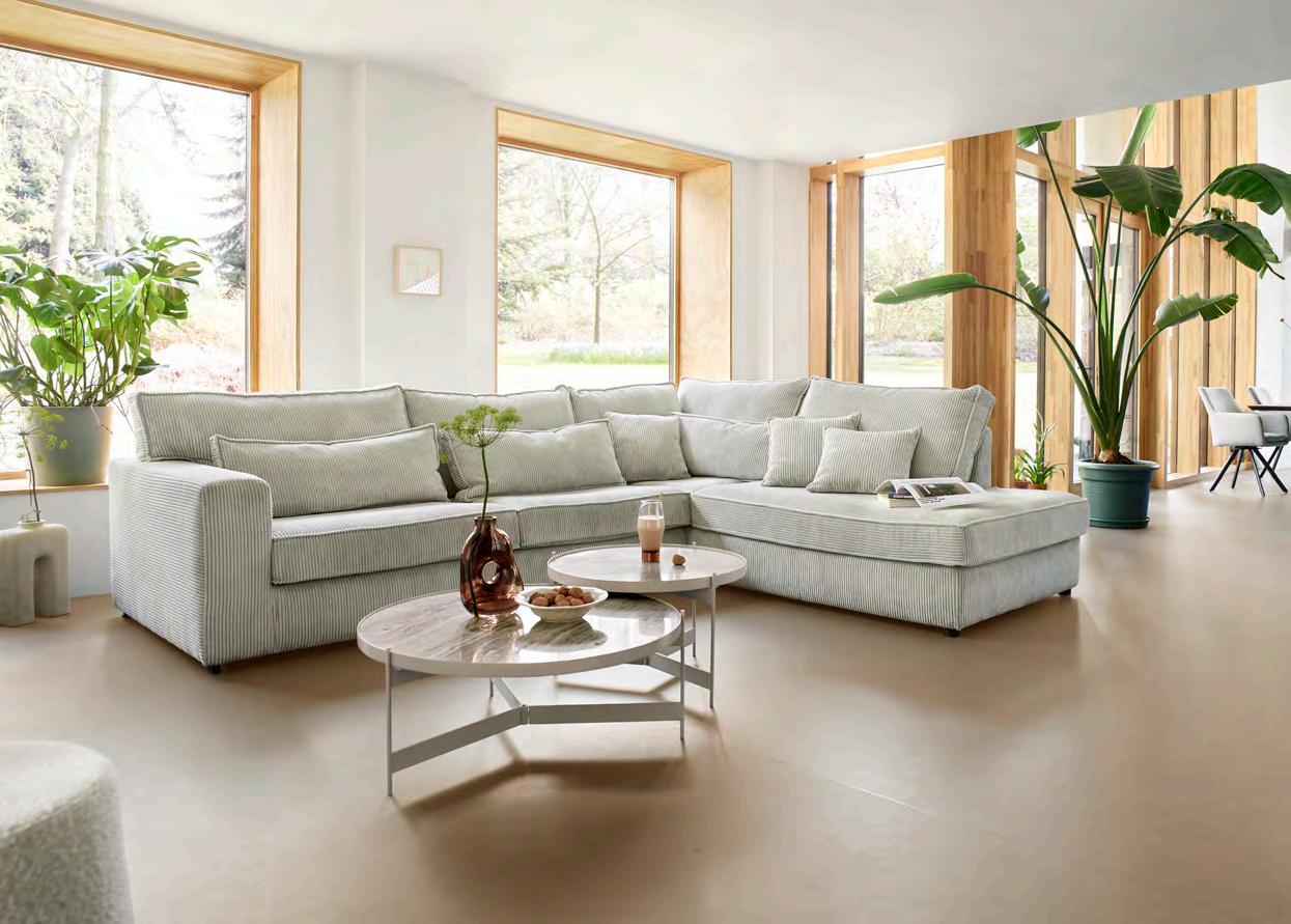 Hoekbank Rovella I Vloerkleed Dariola I Salontafel Leoti I Bijzettafel Leoti