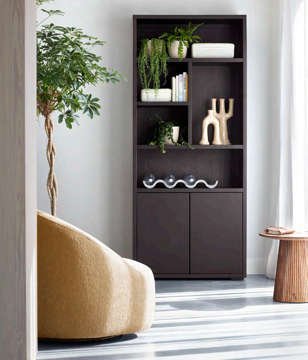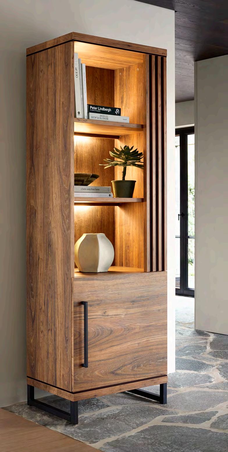 Vakkenkast Marandi I Draaifauteuil en Hocker Mantuia I Dressoir Marandi