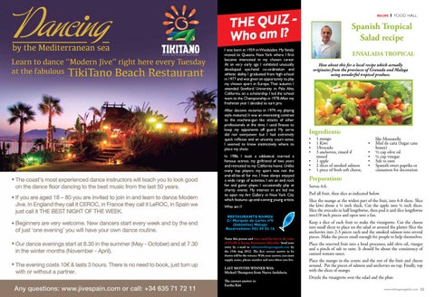 ENSALADA TROPICAL How about this for a local recipe which actually originates from the provinces of Granada and Malaga using wonderful tropical produce.