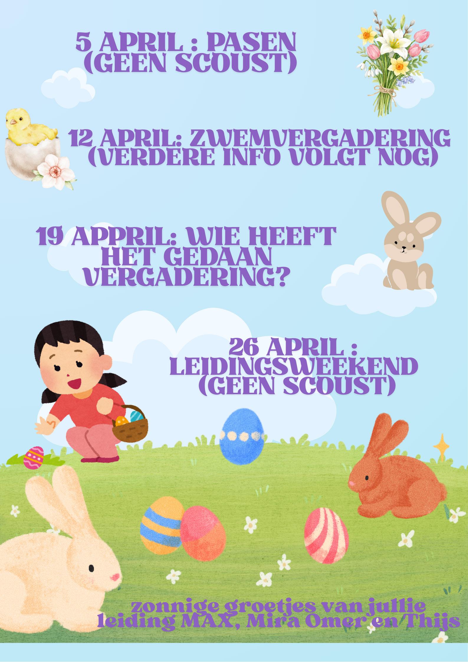 ZONDAG 5 APRIL: GEEN SCOUTS WANT PASEN :(