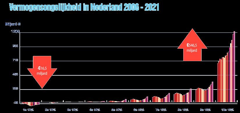 Het grootste probleem van onze tijd is de gierende vermogensongelijkheid. Nederland is wat vermogen betreft een van de meest ongelijke landen ter wereld. Tussen 2006 en 2021 werden de 10% armsten €16,5 miljard armer, terwijl de 10% rijksten maar liefst €546,5 miljard rijker werden. Dit zijn de meest recente cijfers van het CBS.
