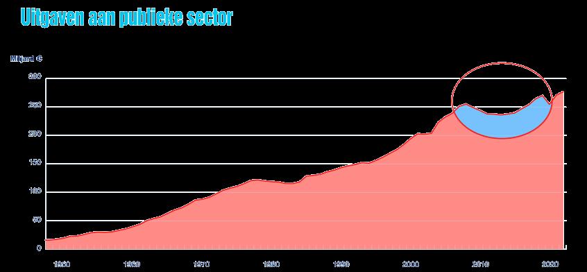 De uitgaven voor de publieke sector moeten in principe elk jaar stijgen, omdat het vooral personeelskosten betreffen en omdat er een grens aan de efficiency zit. In verschillende kabinetten is er bezuinigd op de publieke sector, maar dat betekende veelal ‘minder meer’ uitgeven. Onder de kabinetten van Mark Rutte en zijn VVD is er keihard ingegrepen; het was niet ‘minder-meer’, maar ‘minder-minder-minder’. De grootste bezuinigingsoperatie van 53 miljard op de publieke sector sinds de Tweede Wereldoorlog werd uitgevoerd. In een tijd waarin onderwijs en zorg steeds belangrijker werden, is daar juist een kleiner deel van onze welvaart aan uitgegeven. Het resultaat: wachtlijsten en personeelstekorten.