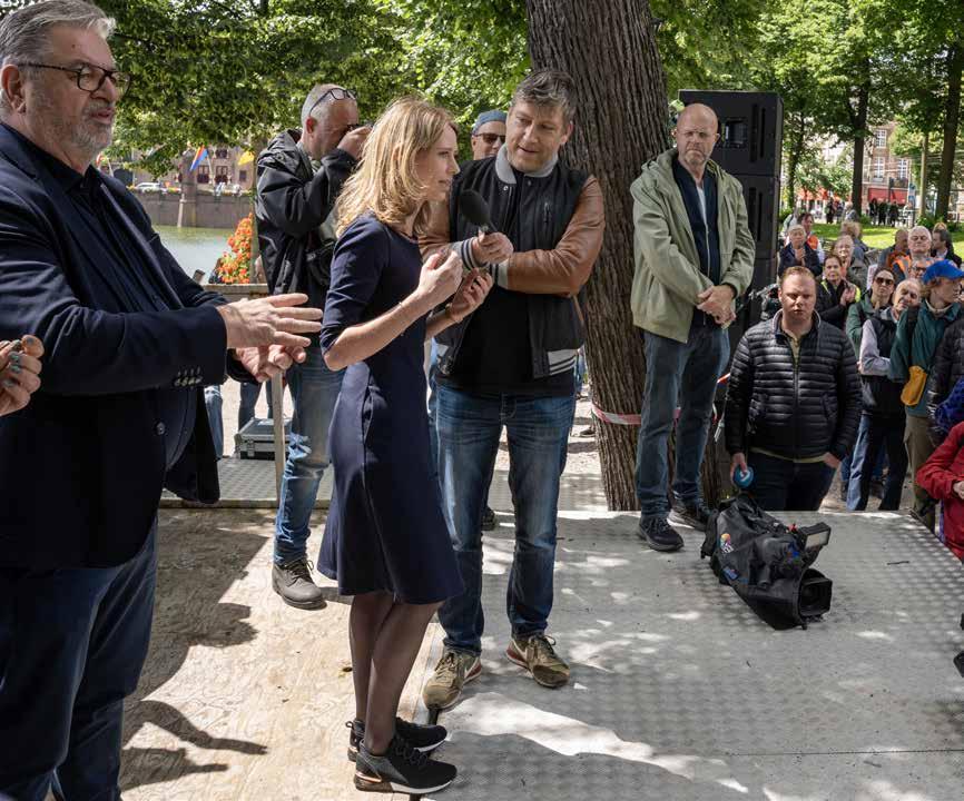 Beckerman tegen Hensema: ‘Jouw voorstelling maakt heel invoelbaar waarom dit zo’n drama is voor de mensen die het meemaken. Toen jij een stukje van je voorstelling deed bij de actie op Vogelenzang was het in het begin best wel lastig om de aandacht van de mensen erbij te houden. De mensen hadden net actie gevoerd, daar waren ze nog helemaal vol van. En de bitterballen kwamen net binnen. En toch, toen jij eenmaal begon te spelen, werd het muisstil. Dat vond ik zo opvallend. Mensen waren echt geraakt, omdat ze het allemaal herkenden, hè. Daarom zou het zo goed zijn als we al deze mensen – ministers, Kamerleden en campinggasten – op één plek zouden kunnen samenbrengen, om jouw voorstelling te zien.’ Hensema knikt bedachtzaam: ‘Daar moeten we dan maar eens over nadenken, want dat zou inderdaad heel erg tof zijn.’ Misschien komt er dan weer reden voor champagne op de camping. <