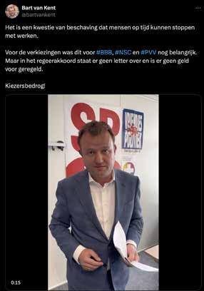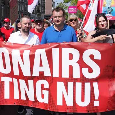 Als er afgelopen week iets duidelijk is geworden, dan is het wel dat er de komende jaren werk aan de winkel is voor socialisten! Want terwijl de partijen van de nieuwe coalitie voor de verkiezingen nog hun mond vol hadden over bestaanszekerheid, is daar in hun ‘hoofdlijnenakkoord’ niks meer van over. Het eigen risico in de zorg wordt niet afgeschaft, maar pas in 2027 gehalveerd en de premie wordt verhoogd. Er wordt niks gedaan aan de hoge huren, die blijven onverminderd hoog. Het minimumloon wordt niet verhoogd; de geplande verhoging wordt zelfs teruggedraaid! Kortom, iedereen die zijn inkomen verkrijgt uit werk of een uitkering – wat wij de werkende klasse noemen – heeft helemaal niks aan deze coalitie. Maar grote bedrijven en die andere klasse, zij die hun inkomen verkrijgen uit vermogen, die likken hun vingers af bij deze plannen. Wilders deelt aan de ene kant cadeautjes uit door belastingen op inkomen uit