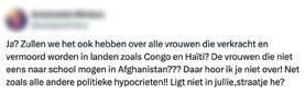 Ook Peter Mertens, Kamerlid voor de Belgische PVDA, hekelde de hypocrisie van het politieke establishment: ‘Steeds als wij vroegen om investeringen in de sociale voorzieningen, om de treinen goed te laten rijden, om functionerende tehuizen voor ouderen met genoeg zorgpersoneel, dan werd er gezegd: ‘Nee Peter, je hebt het niet goed begrepen, we zouden dat echt heel graag willen, maar daar is echt geen geld voor.’ En opeens zegt Trump nu ‘Vijf procent!’ en iedereen springt in de houding en zegt: ‘Yes sir!’ Het is een aanval op ónze sociale verworvenheden – verworvenheden waar de werkende klasse decennia voor heeft gevochten. Daarom zeggen wij: geen eurocent meer aan hun oorlogen!’