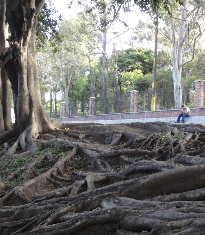 Minutos antes patinetas y triciclos rompían el silencio de las calles y encaminados por el paseo se dirigían como siempre hacia el sur. Una rubia, ¿Sería una belga o una española? Va a buen ritmo en su bicicleta, Jocotenango posee las cualidades de vida para que los extranjeros, jóvenes especialmente, busquen alojamiento en sus viviendas tipo chalé o en pequeños apartamentos. Al atravesar el Anillo Periférico la atmósfera cambia nuevamente, la Avenida Simeón Cañas parece ser la única vía de la ciudad con tránsito desfogado, grafiti en uno de sus laterales contrasta con exquisitas viviendas de la