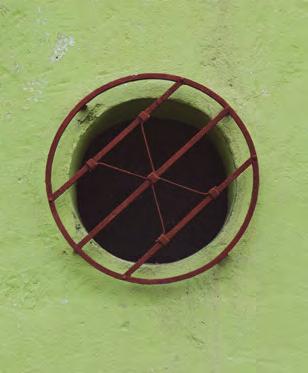que la recorren por la parte superior hasta llegar al remate. Otras viviendas, como la del portón de madera sobresalen porque, como hemos visto con anterioridad pocas casas pequeñas cuentan con elementos de carpintería tallada, esta vivienda tiene una fachada con un juego de planos sencillo pero su característica sobresaliente es su portón de madera. Por último, una vivienda de frente mínimo también se puede distinguir por su ingreso. La crestería de la casa de las olas es simple pero el sobreluz de la puerta combina un marco de madera con una protección de hierro de forma ondulada.