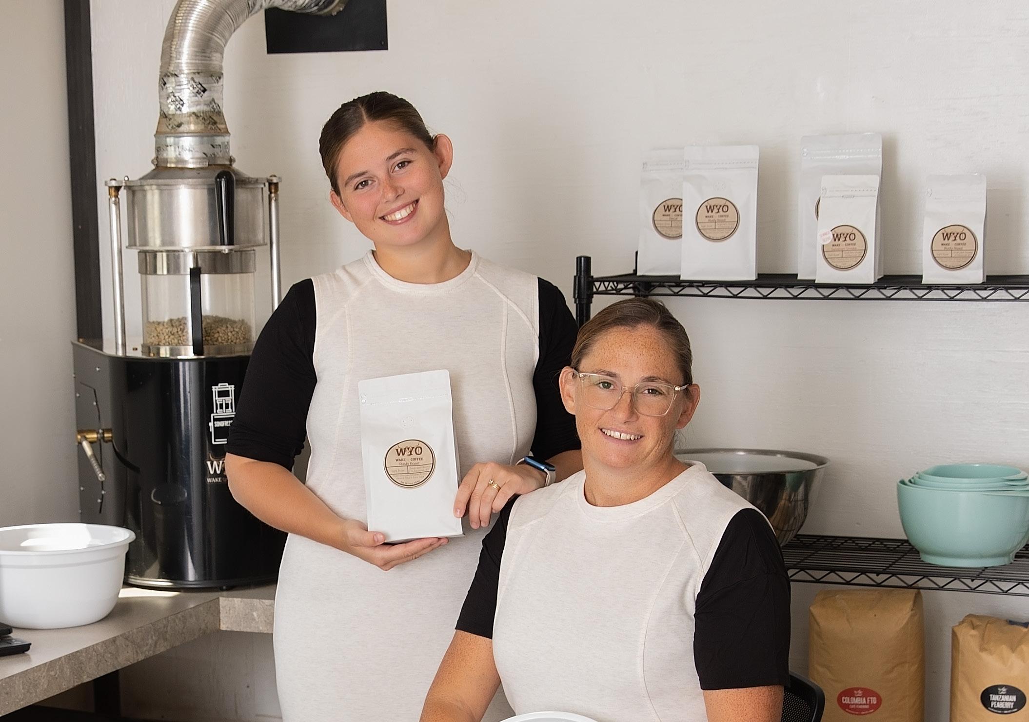 A er years of enjoying the co ee themselves, Joyce and her family saw an opportunity to not only buy the business, but to grow it into something that could serve their community in a larger way. “We thought, why not share the co ee we love with the people we love?” Joyce recalls. Today, mother and daughter take the lead roles (with each family member lending a hand), making Wyo Wake a true family-driven e ort.