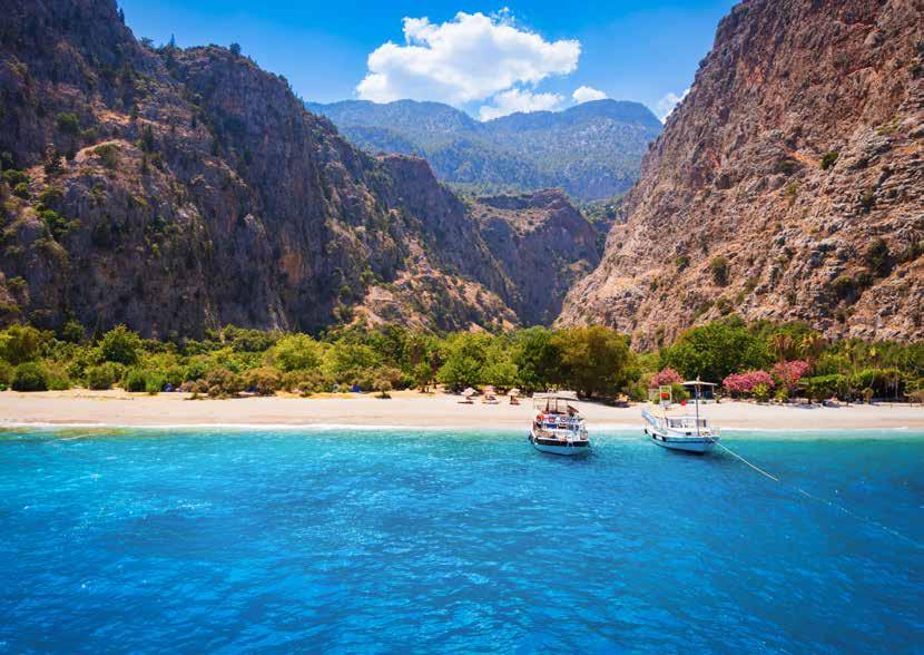 Gek op watersporten? Dan ben je hier aan het juiste adres. Voor wie adrenaline zoekt is paragliden bij Ölüdeniz een absolute must. Zwevend boven de beroemde Blue Lagoon geniet je van een spectaculair uitzicht en een onvergetelijke ervaring. Onder water biedt Kekova een betoverende wereld voor duikers. Tussen kleurrijke vissen ontdek je de verzonken ruïnes van oude steden en mystieke grotten, waardoor duiken hier aanvoelt als een kleine ontdekkingsreis. Zoek je snelheid op het water? Dan kun je hier uitstekend jetskiën of wind- en kitesurfen langs de kust. Vooral bij stranden met constante wind, zoals Ölüdeniz en Fethiye, raas je over de golven. Avontuur gegarandeerd! Wie het liever rustig aan doet, stapt aan boord van een traditionele gulet en maakt een zeiltocht langs verborgen baaien. Onderweg kun je zwemmen in kristalhelder water, snorkelen tussen rotsformaties of gewoon genieten van de zon op het dek met een verfrissend drankje. Of je nu adrenaline zoekt of ontspanning, de watersportmogelijkheden aan de Turkse Rivièra zijn eindeloos.