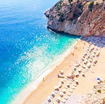 De Turkse Rivièra is misschien wel de mooiste kust van de Middellandse Zee. In Antalya vind je brede zandstranden zoals Konyaaltı Beach en Lara Beach, perfect voor een dag zonnen met alle faciliteiten binnen handbereik. Voor een bruisende sfeer en watersporten is Kleopatra Beach in Alanya een klassieker; beroemd om het kristalheldere water en het uitzicht op de oude burcht. Zoek je iets rustigers? Trek dan naar de idyllische baaien rond Kaş en Kalkan, waar kleine kiezelstranden worden omringd door rotsen en pijnbomen. Een hoogtepunt is het zandstrand Kaputaş Beach, een fotogenieke baai die je bereikt via een trap langs de kliffen. Hier glinstert het turquoise water bijna onnatuurlijk mooi! Een absolute must is Patara Beach, een van de langste stranden van Turkije. Het honinggele zand strekt zich uit over 18 kilometer en wordt omringd door duinen en natuur. Patara Beach dient bovendien als belangrijke broedplaats voor de beschermde Caretta-schildpadden, die vooral van juni tot september te zien zijn wanneer de vrouwtjes ’s nachts hun eieren leggen. Wie het zwemmen wil afwisselen met antieke ruïnes, zit bij Olympos Beach goed. Rondom het strand liggen weelderige bossen en op loopafstand zijn een aantal overblijfselen van de oude stad Olympos te vinden zoals het oude theater, tempels, Romeinse badhuizen, graven en stadsmuren. De Turkse Rivièra is ook dé hotspot voor luxe en comfortabele resorthotels in het Middellandse Zeegebied. Van wereldklasse-resorts in Antalya en Alanya tot kleinschalige boutiquehotels in Kaş, Kalkan en Olympos. De regio biedt luxe en gemak op elk niveau.