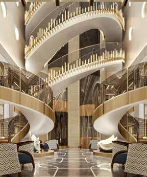 Gasten worden verwelkomd in het indrukwekkende Starlight Atrium, een open ruimte die de grandeur van het schip benadrukt. Voor een intiemere setting is er Galileo’s Bar, een stijlvolle lounge waar je geniet van livemuziek en een zorgvuldig bereide cocktail. De ruimtes zijn ontworpen om zowel sociale interactie als rust en privacy te bieden. Elk detail is doordacht en draagt bij aan het gevoel van tijdloze luxe.