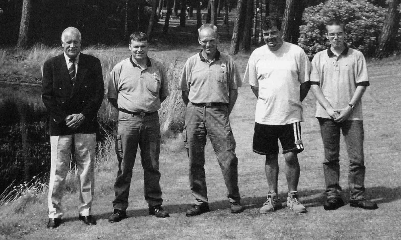 1990 - V.l.n.r. Ben van der Ham, Elly van den Broek, Geert de Moor en Hans van Erven. Op de achtergrond Ad van Ooststroom.
