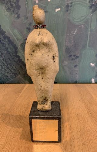 Oktober 2001 - beeldje aangeboden door gemeenten Bergen op Zoom en Roosendaal. Het beeld (tussen het terras en de oefengreen) symboliseert de samenwerking tussen beide gemeentes.
