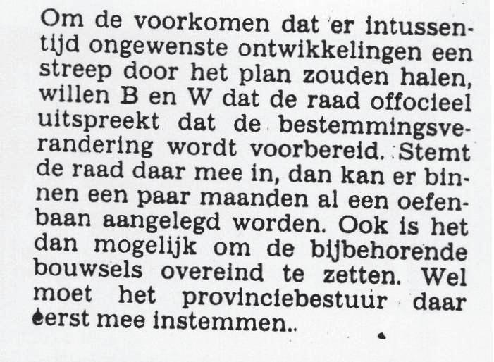 Op 20 november 1977 werd het bestemmingsplan na een jarenlange procedure en bezwaren van omliggende boeren eindelijk goedgekeurd.