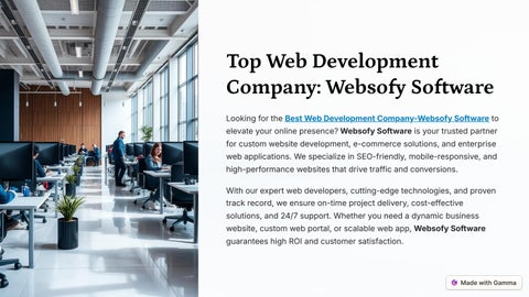 Looking for the BestWebDevelopmentCompany-WebsofySoftware to elevate your online presence?WebsofySoftware is your trusted partner for custom website development, e-commerce solutions, and enterprise web applications. We specialize in SEO-friendly, mobile-responsive, and high-performance websites that drive traffic and conversions.