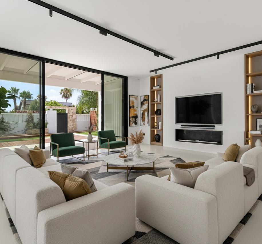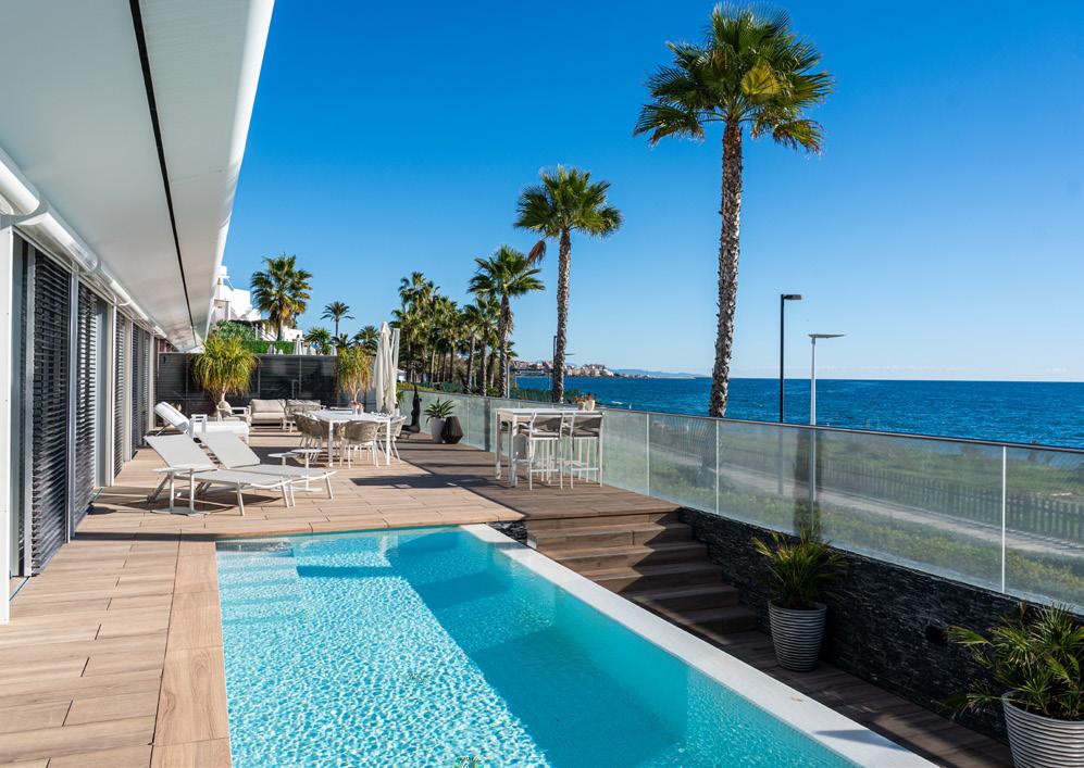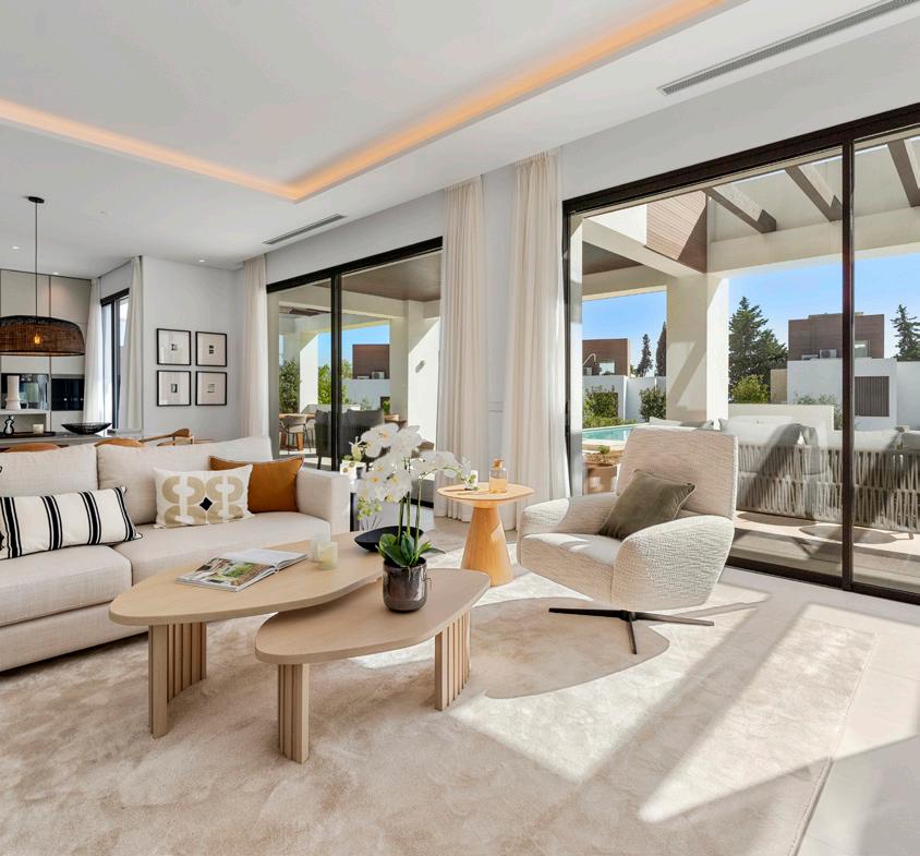 Villa Seashell is a modern four-bedroom, fourbathroom home built in 2019 with clean Californian and Mediterranean design. Just 100 meters from the beach each in Marbella, the villa offers prime access to the coast and is only a short walk to Marbella Club, Cappuccino Café, shops and supermarkets. Set across three floors, it features high ceilings, sleek interiors, and elegant finishes.