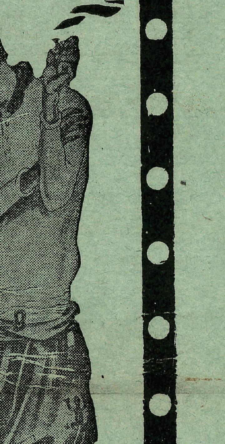 Cartelera de los Cines Parisiense y Olimpia que anuncia la exhibición de los episodios 7 al 12 de Los conquistadores del oeste.