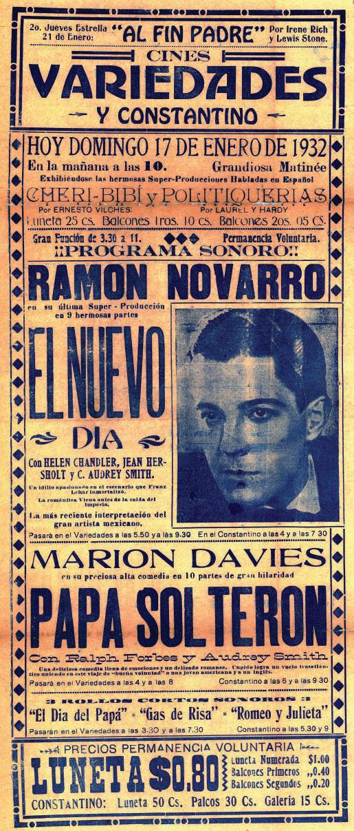 Cartelera del Cine Lux que anuncia la exhibición de Los sentimentales y Los náufragos de la vida.