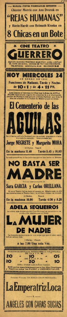 cos, teatros, variedades. Junta comisión poblana de box, deportes y similares. Promociones de los interesados en este ramo. Funciones de beneficio, propaganda y otros espectáculos en general. Cartel publicitario Teatro Aquiles Serdán.