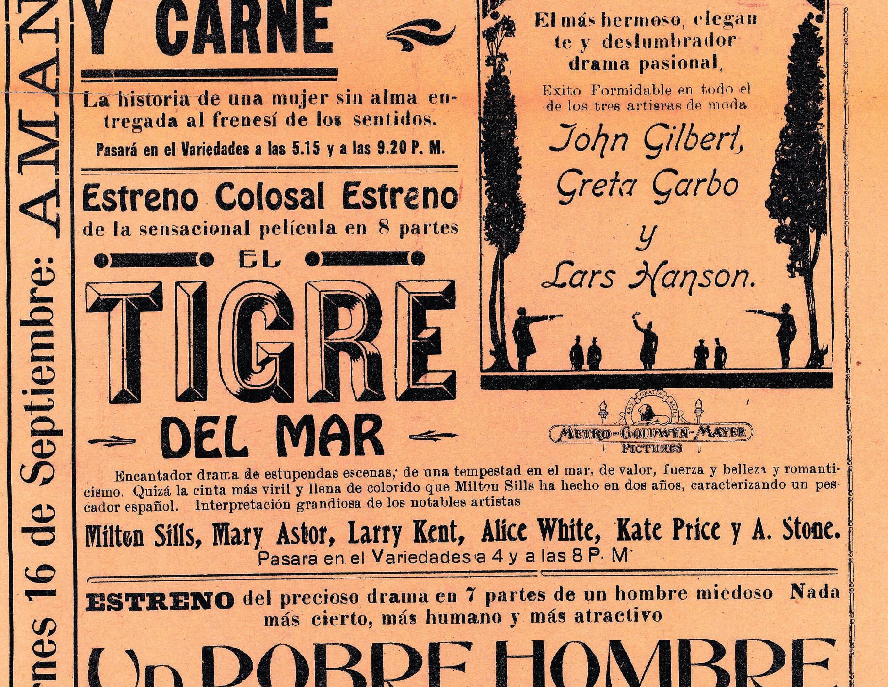 catecas «Héctor Herrera», la exhibición de películas de arte, cómicas y melodramáticas, americanas y europeas, y el éxito El fin del mundo.
