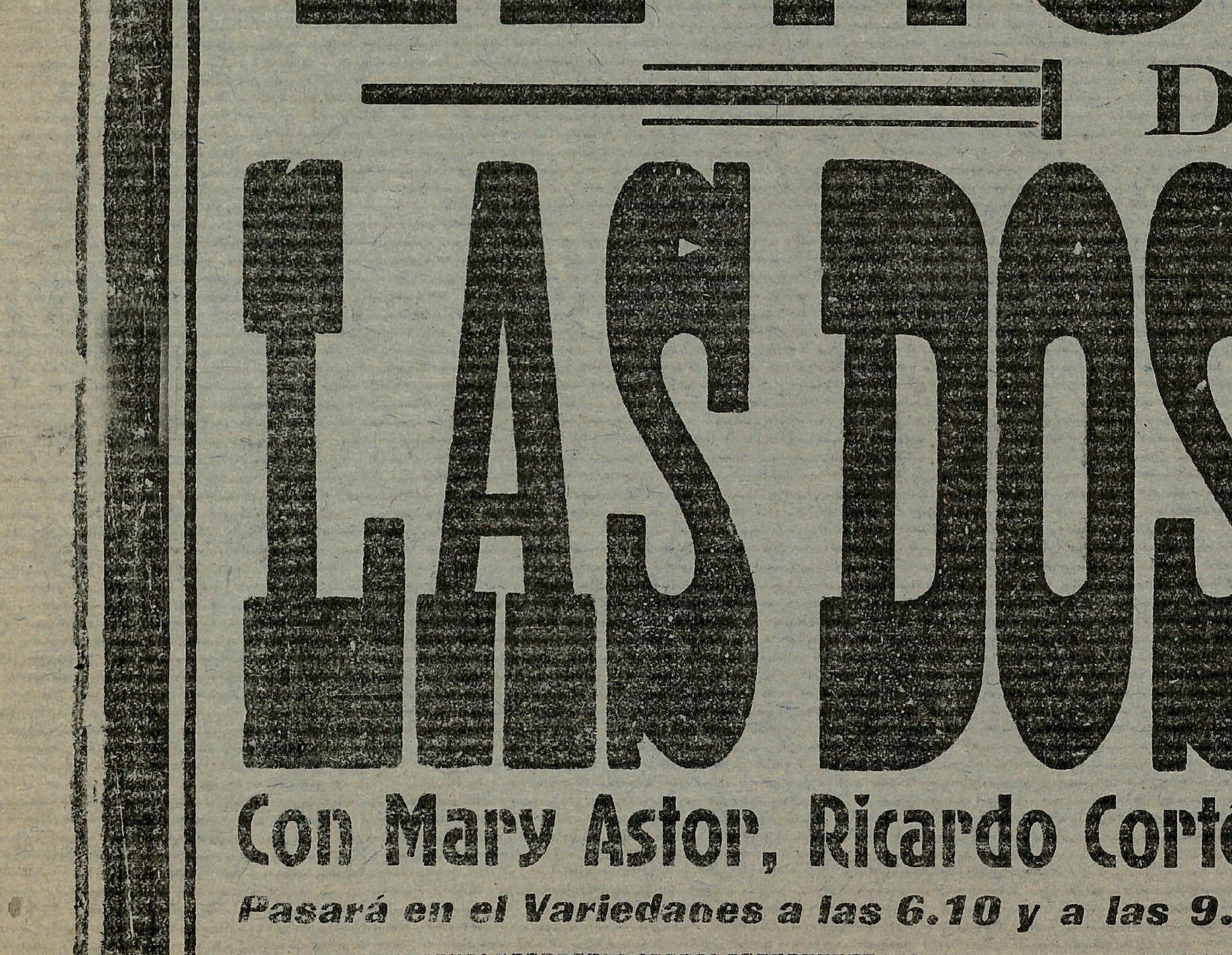 Cartelera del Teatro Cine Lux que anuncia la exhibición de las cintas La victoria del impostor y Las dos princesas.