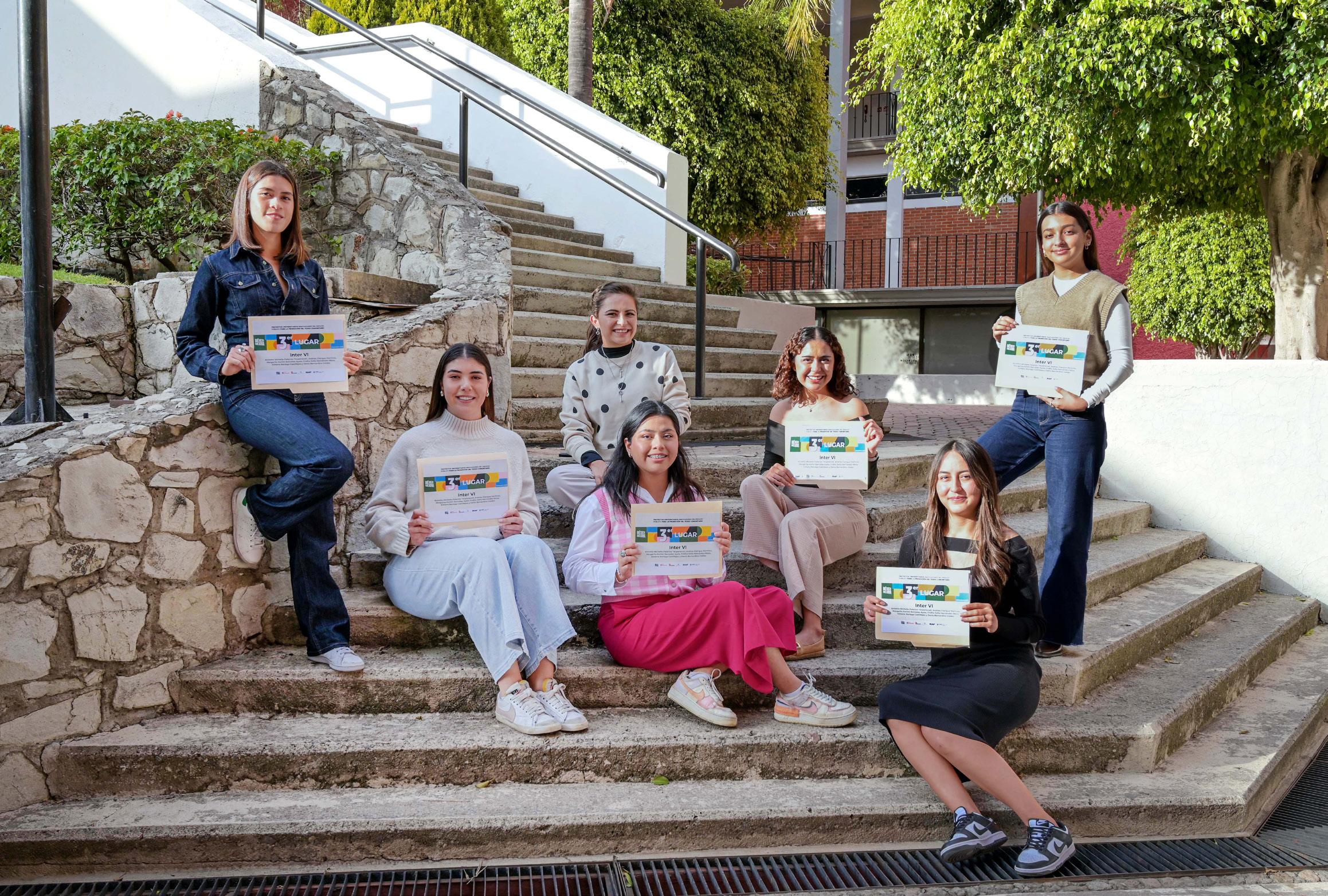 Annette Michelle Palacios Tecpanecatl, Andrea Clairgue Martínez, Margarita Korimi Barradas Ayala, Fridha Sofía Hernández Meza, Ximena Noriega Castillejos y Denis Bernardino Valdez, estudiantes de Arquitectura de Interiores, con el apoyo de la Mtra. Leticia Villanueva, ganaron el tercer lugar en el concurso de México Mejora «Proyectos universitarios innovadores del espacio público para la promoción del tejido comunitario»