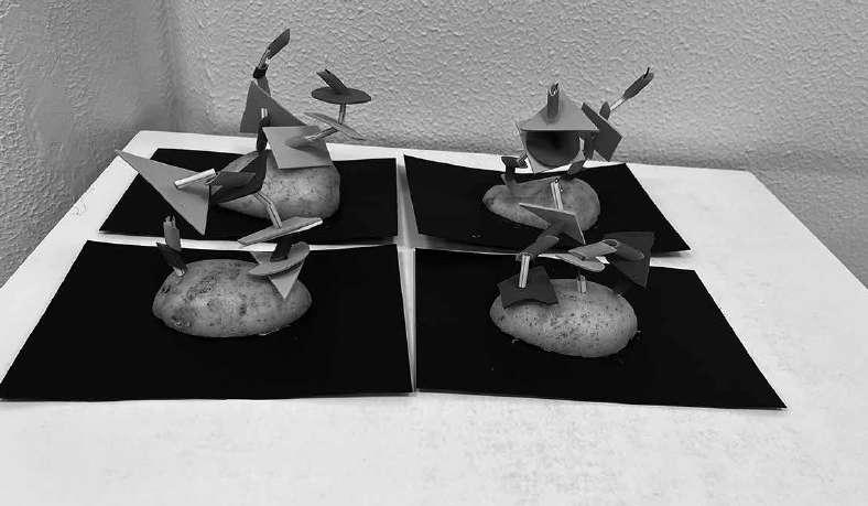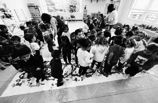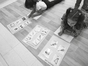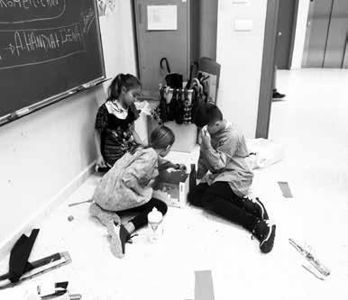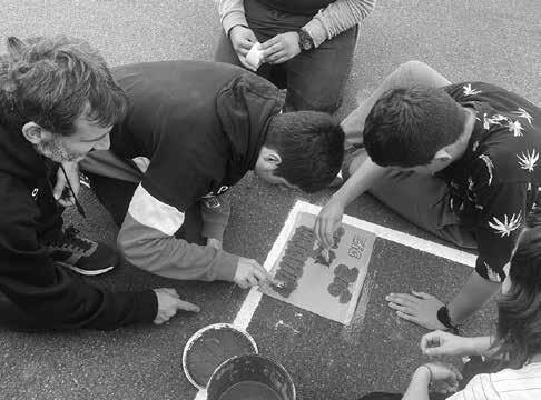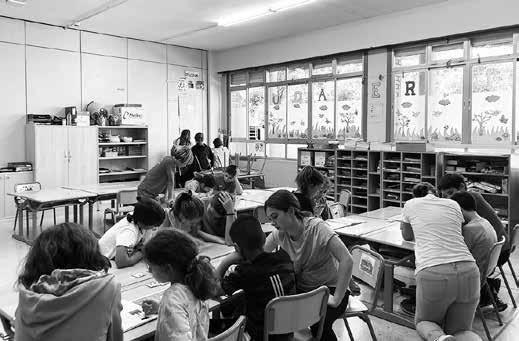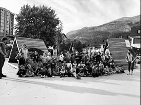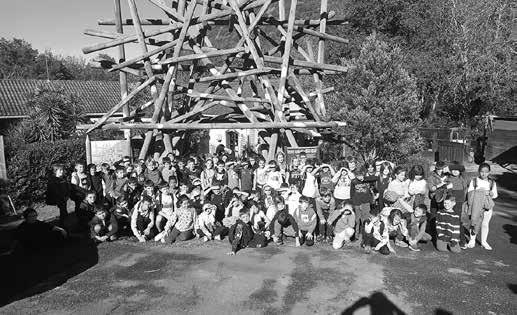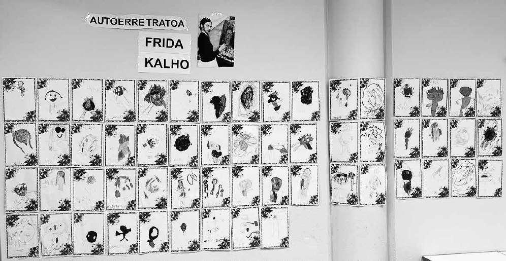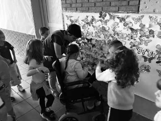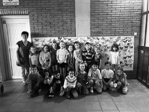 burutu dira; adibidez ikasle bakoitzak tximeleta bat margotu du eta kanpoko aterpean itsatsi ditugu ehundaka tximeleta koloretsu.
