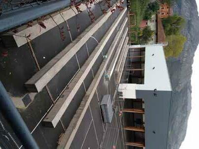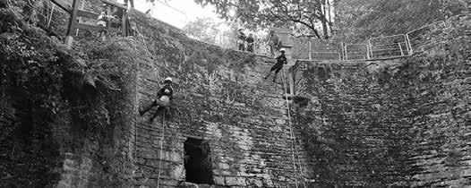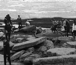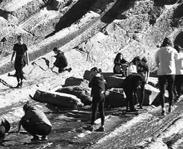 Ikasle taldea ageri den argazkiaren atzeko haitzak chevron erakoak dira, V itxurako toles angeluarrak. Ondoren, Fruizko harrobian zutabe disjuntzioa ikusi zuten basaltoetan.